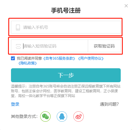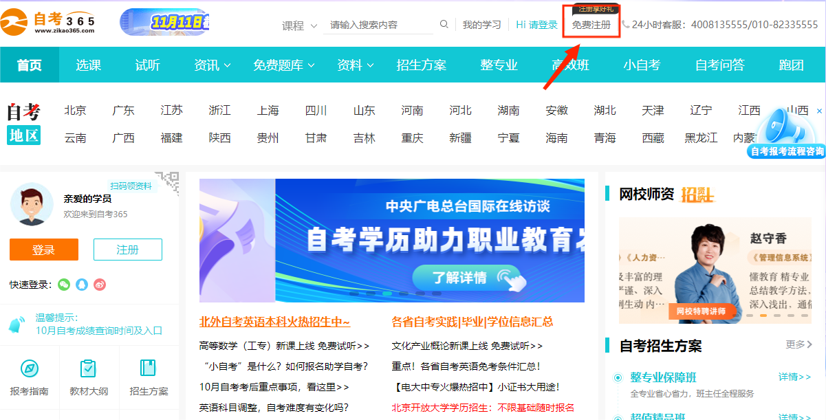 1进入自考365网校网站首页,在左上部点击注册按钮,进入注册页面。