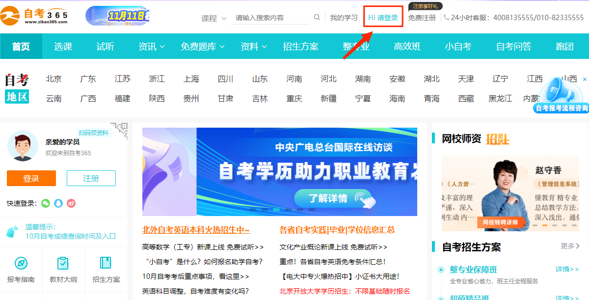1进入自考365网校网站首页,在左上部点击登录按钮,进入登录界面。