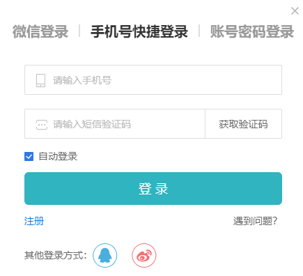 进入登录页面,点击手机号快捷登录,在登录界面下方“其他方式登录”那里选择您需要的第三方授权方式(QQ/微博)进行登录即可。