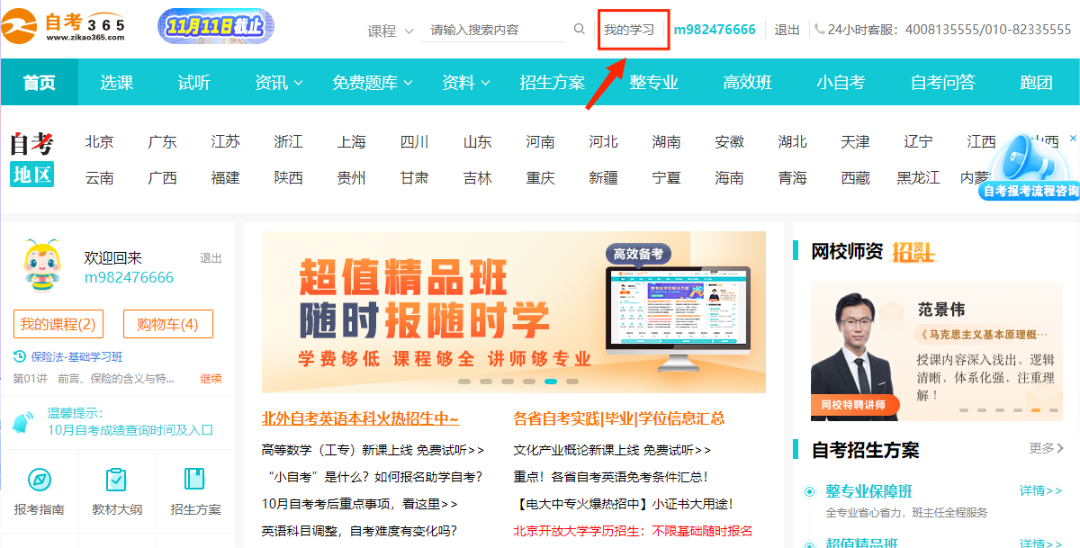 1在自考365网校网站首页,点击左上方的登录/注册按钮,弹出登录/注册弹窗;